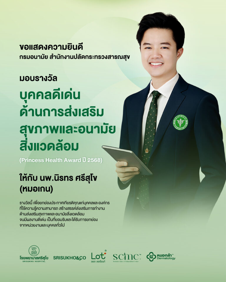 We extend our warmest congratulations to Dr. Gain-Niratorn Srisukho on being honored with the Princess Health Award 2025 for Outstanding Individual in Health Promotion and Environmental Health by the Department of Health, Ministry of Public Health.
