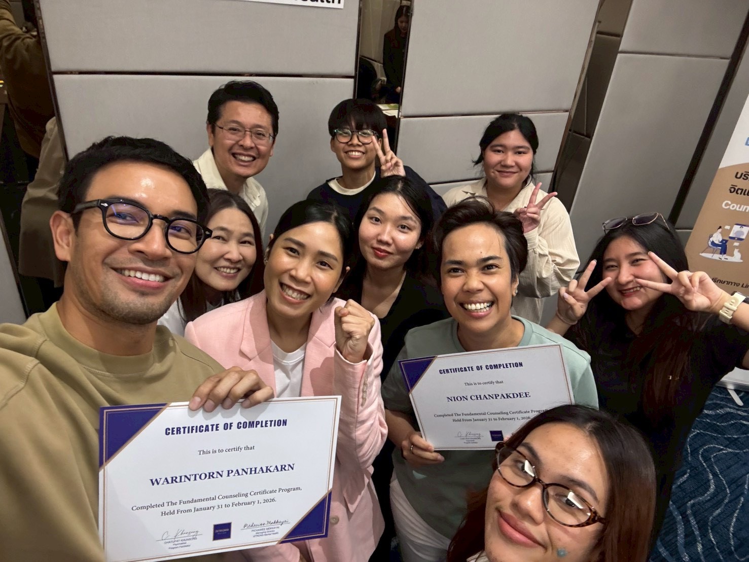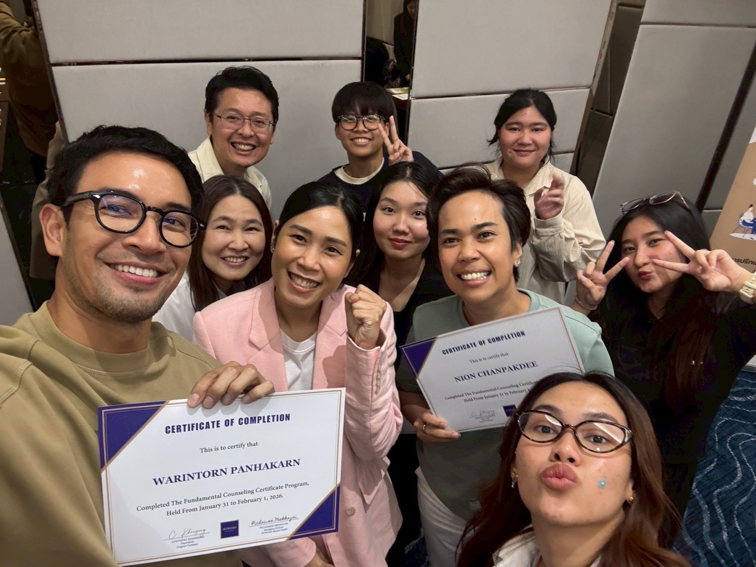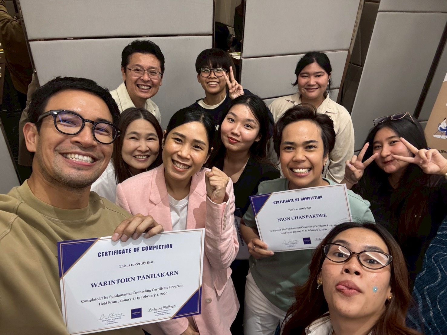 คุณน้ำ และ คุณนิ้ง เข้าร่วมอบรมขั้นต้น วิชาชีพ การเป็นผู้ให้คำปรึกษา ในโครงการนำร่องเรียน 6 คนแรก (บิว เฟิร์น น้ำ นิ้ง ณกมล รอบบาร์) พัฒนา วิชาชีพ ผู้ให้คำปรึกษา ของ ScMc Thailand (กลุ่มศรีสุโข) และคนกลาง เป็นนักแสดงมีชื่อเสียงก็เข้ามาร่วมอบรมด้วย